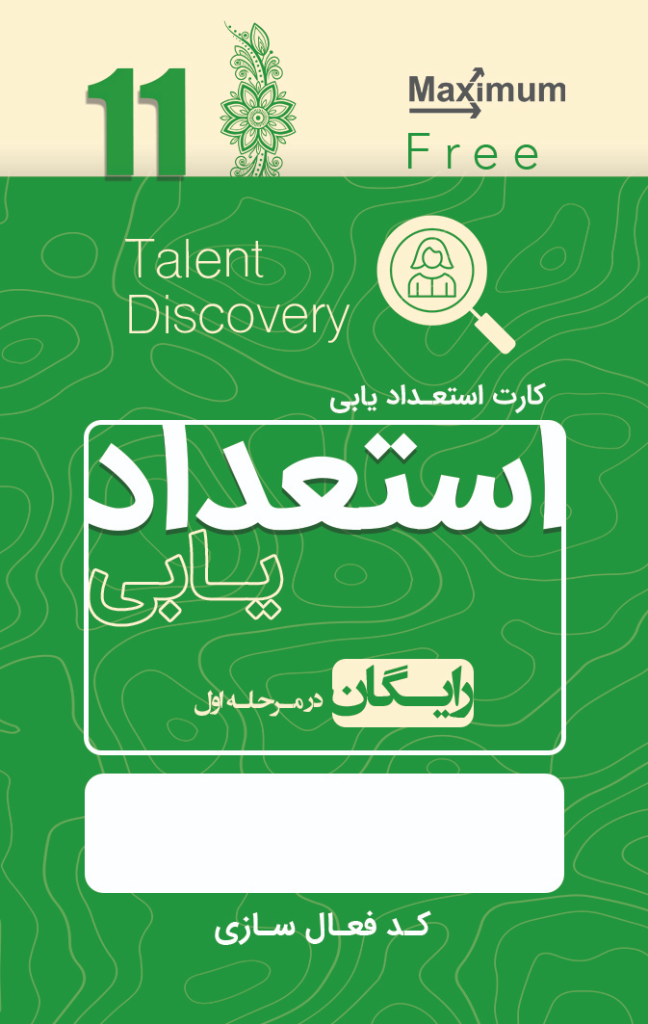کارت صرفاً جهت استفاده از خدمات استعدادیابی شغلی، تحصیلی و ... (مرحله اول) صادر شده است.